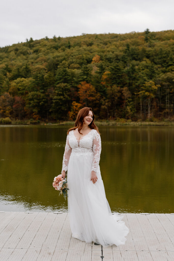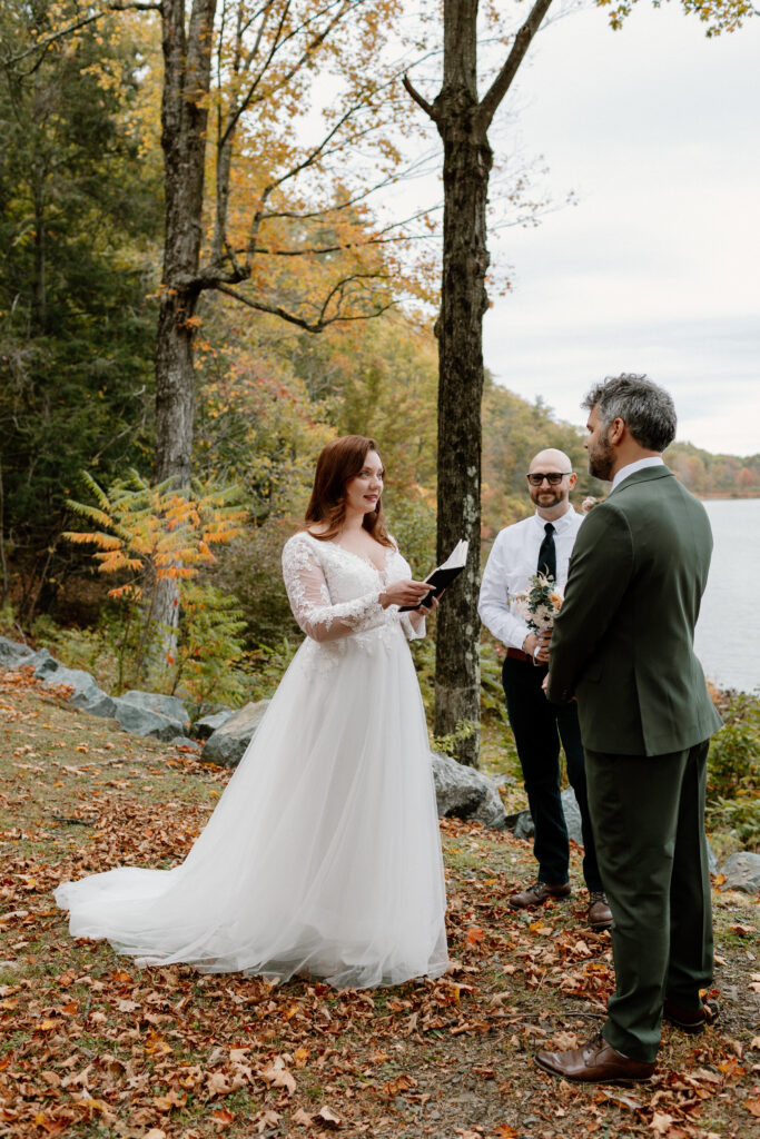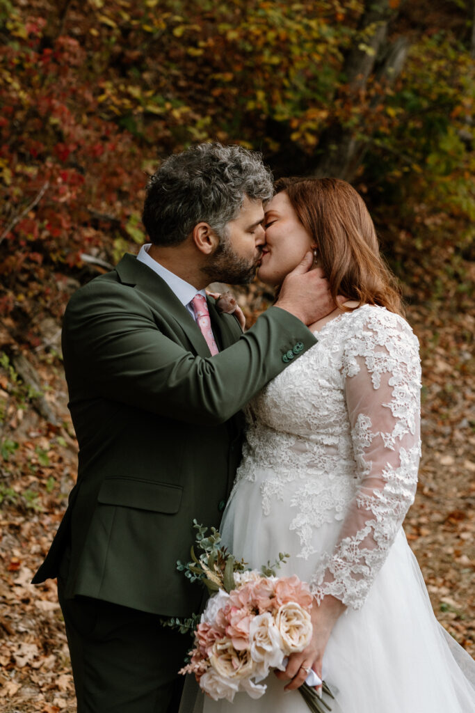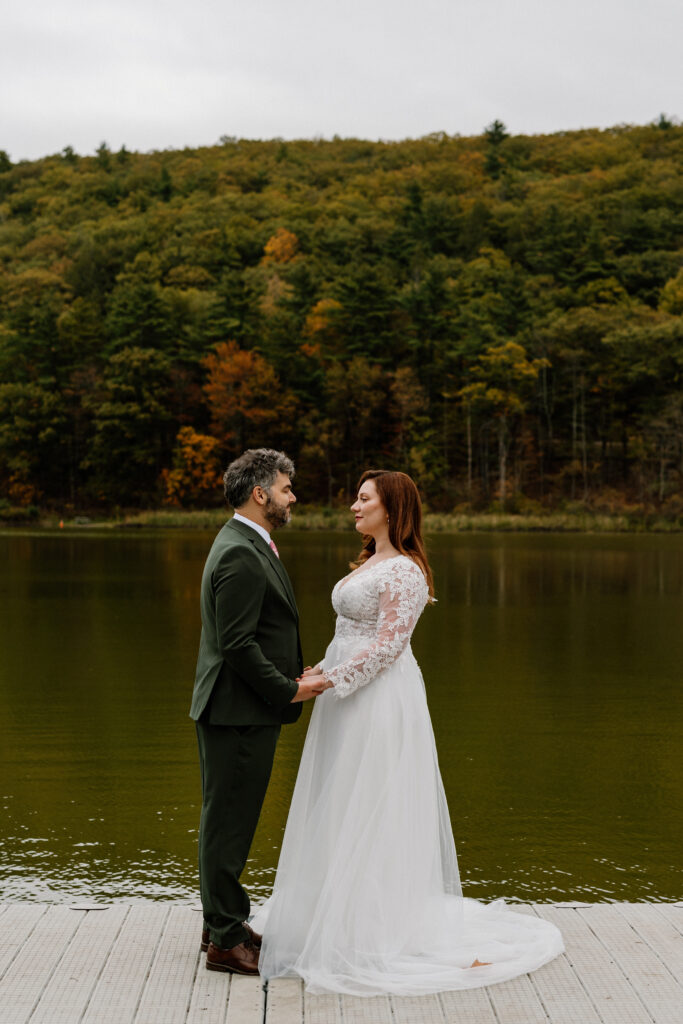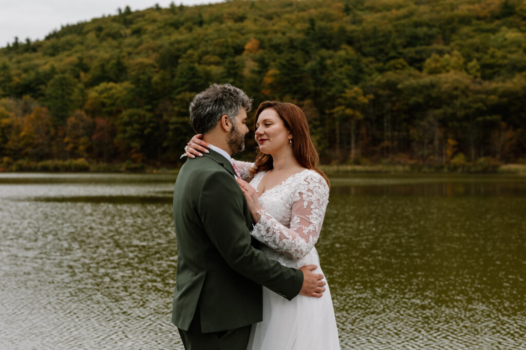 I loved photographing Clara & David’s Hudson Valley NY elopement. The vibe was definitely magical between the ethereal autumn woods and Clara & David’s very intimate celebration. They were married by a friend, overlooking a beautiful lake. It doesn’t get much better than that for an Upstate NY elopement. There are so many beautiful locations in nature here!